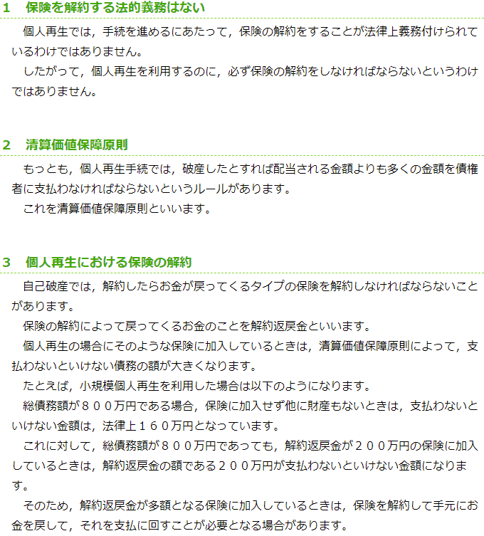 個人再生をすると、保険を解約しなければいけませんか?